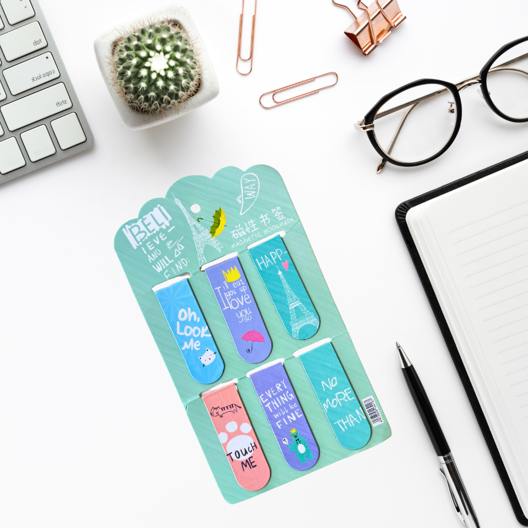 Never lose your page again with our Magnetic Bookmarks. Cute, compact, and functional, these bookmarks clip securely onto your pages without slipping or damaging your books.